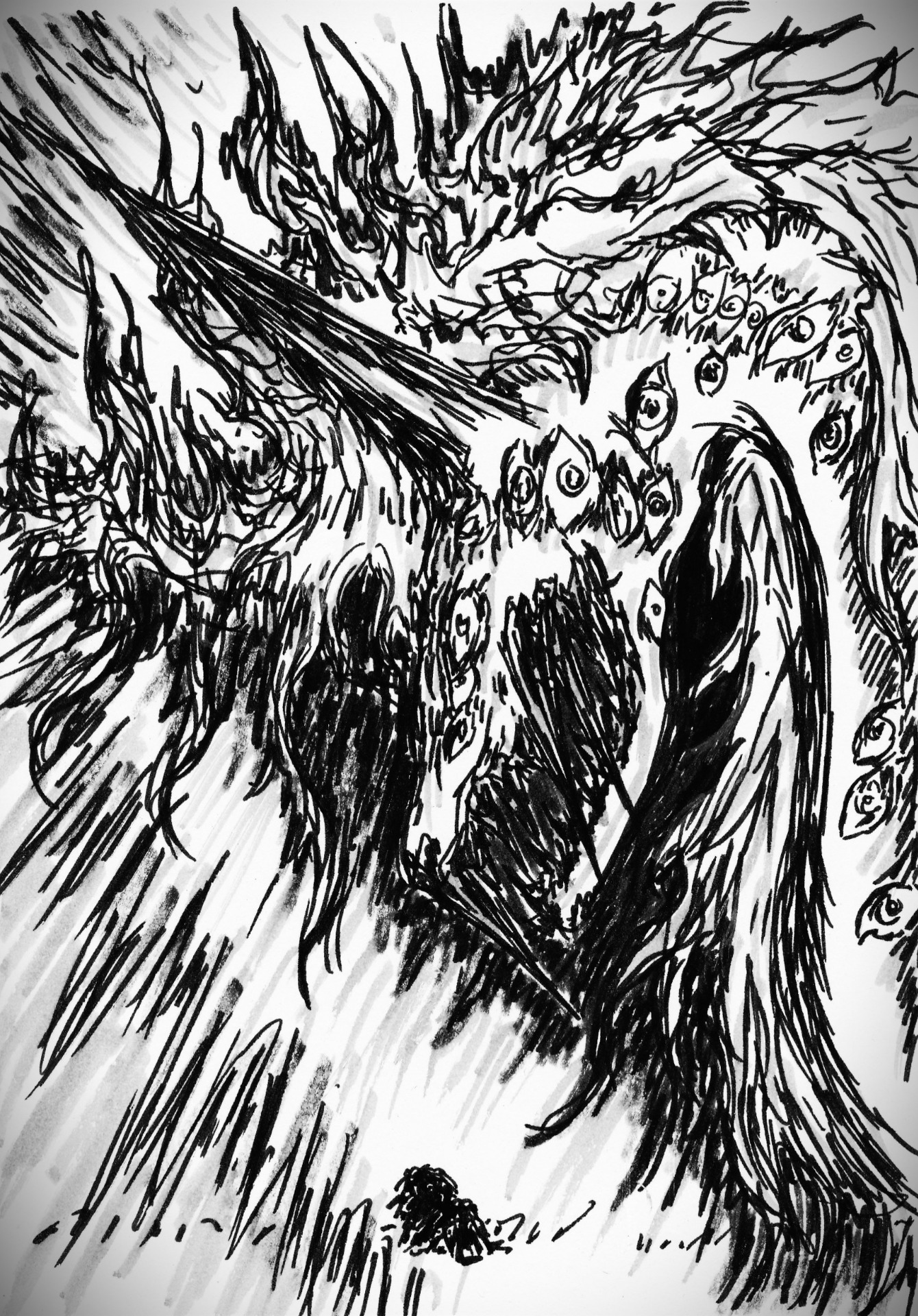 Alisen Tuonelan kalmanväki on vitivalkoisia, kummitusmaisia, kasvottomia olentoja, joilla on pitkät raajat. Ylisen Tuonelan kalmanväki taas muistuttaa suuria hyönteisiä, joilla on panssarit, ihmisen kasvot ja satoja silmiä. Ajatus Ylisestä ja Alisesta Tuonelasta pohjautuu suomalaiseen muinaisuskoon, jonka mukaan oli kolme maailmaa: ylinen, alinen ja keskinen. Alinen maailma oli Tuonela ja ylinen taivas. Mitään Ylistä Tuonelaa Suomen kansanperinne ei todellisuudessa tunne, tämä on minun keksimäni konsepti.